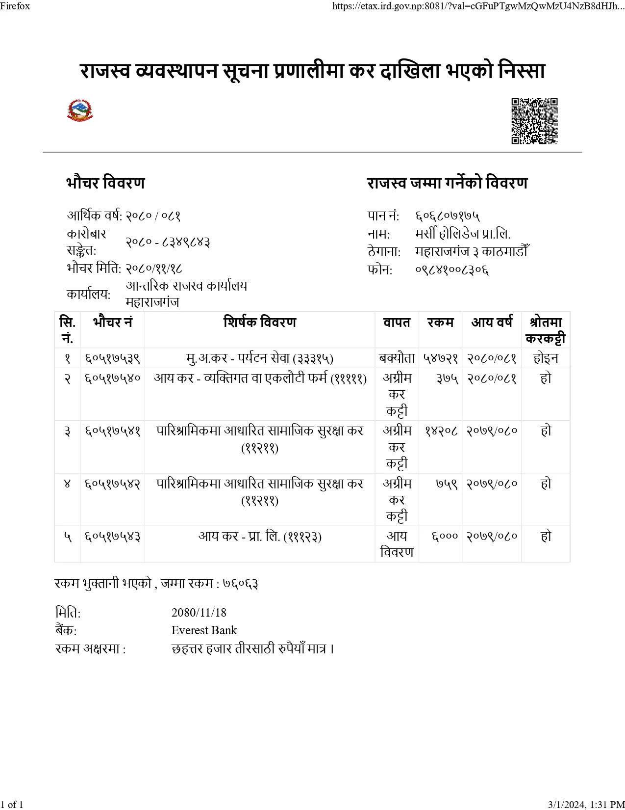 Mercy Holidays Tax Paid Receipt